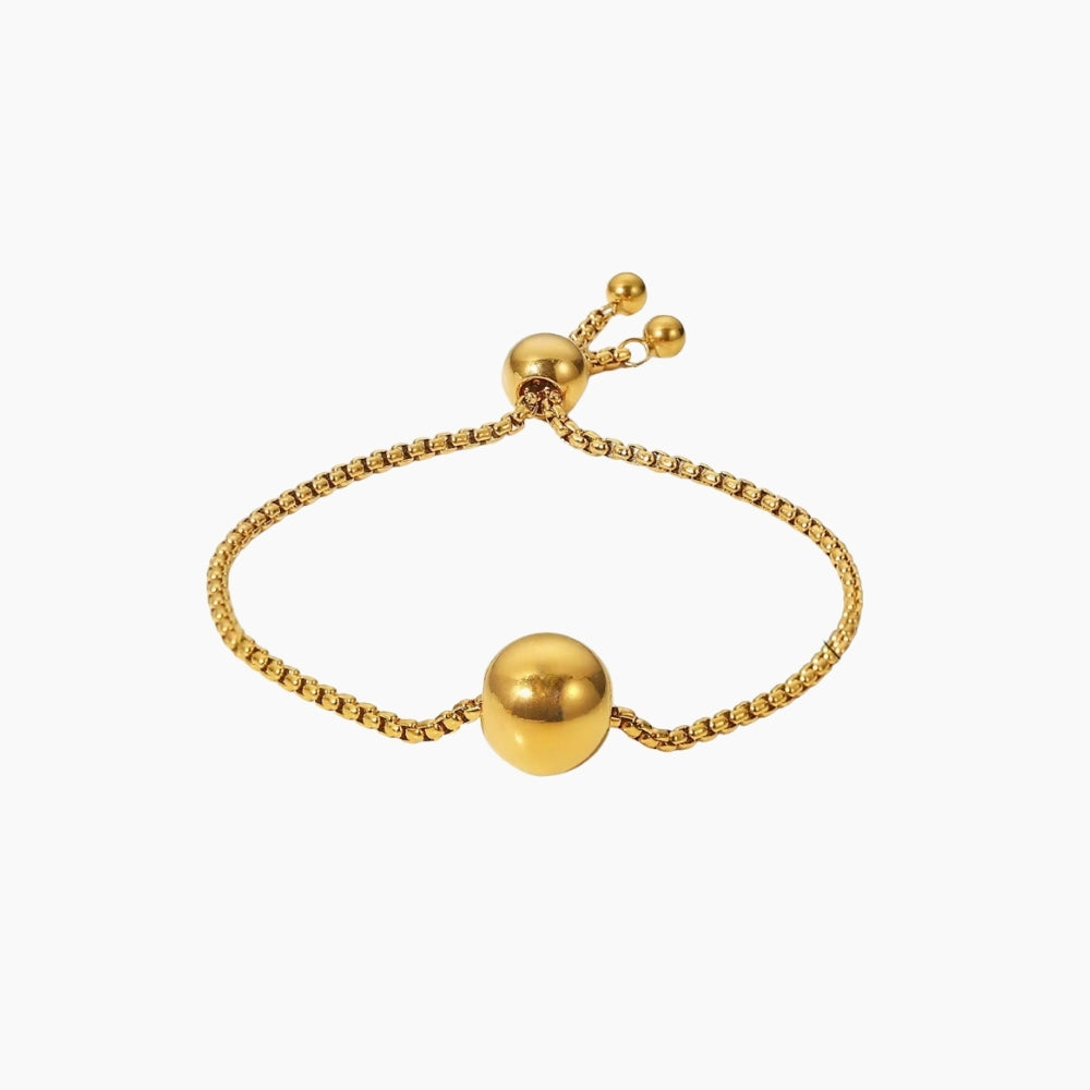 Detta moderna armband i 18K guldpläterat rostfritt stål är både slitstarkt och elegant. Välj mellan ett stilrent halsband eller ett justerbart armband – båda med en iögonfallande rund berlock som tillför sofistikerad charm till alla outfits. Perfekt för både vardag och fest. Smyckena är vattentåliga, nickelfria och designade för att hålla länge utan att tappa färg eller glans.