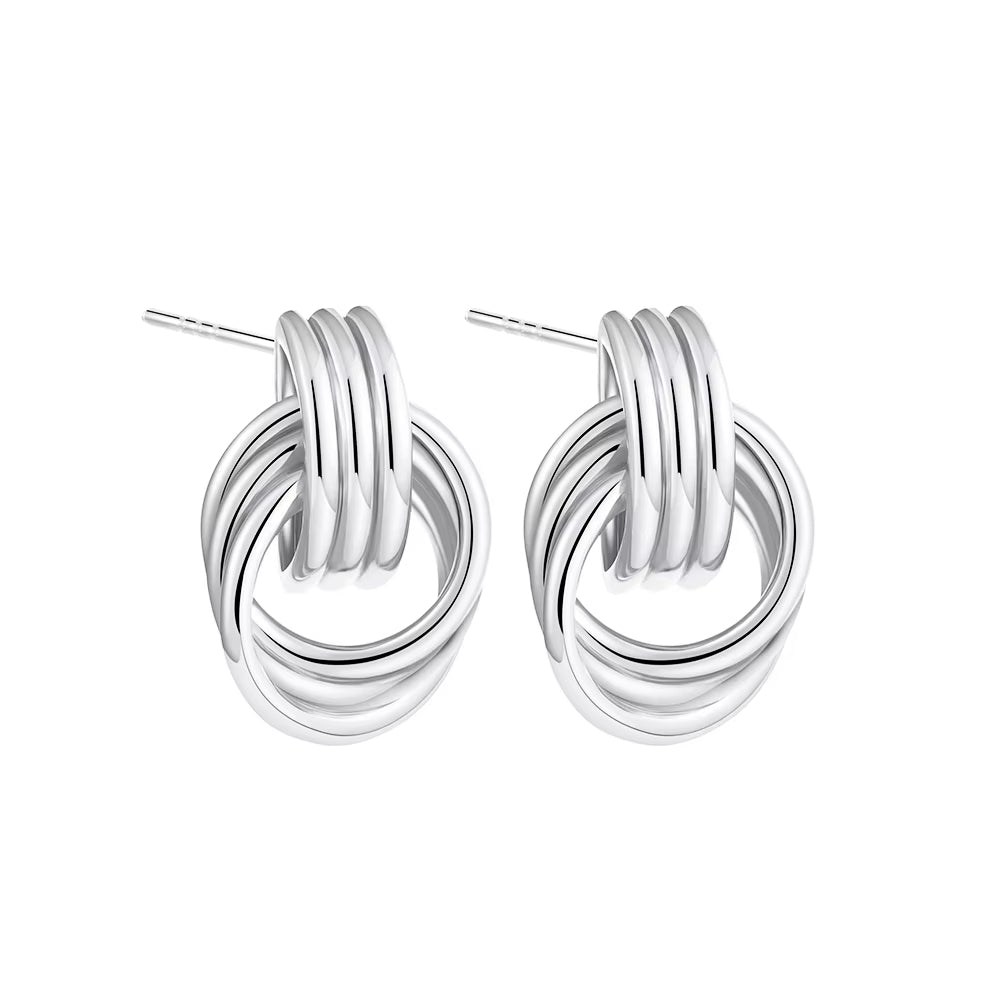 Upptäck ett par statement-örhängen som kombinerar elegans och edge i ett. NOVALI är designade med tre tvinnade ringar i en stilren knutform, vilket ger ett tidlöst men kraftfullt uttryck. Perfekta för både vardag och fest.
